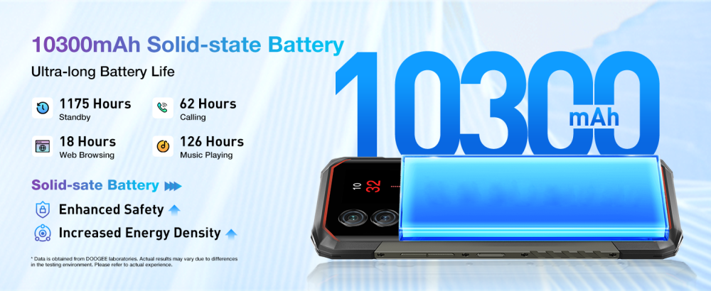 10,300mAh Battery in a Slim Design: The DOOGEE Blade10 Max is equipped with a durable 10,300mAh battery capable of withstanding extreme temperatures from -40°C to 70°C. It supports 18W fast charging and OTG reverse charging to power other devices. Despite its high-capacity battery, the phone maintains a sleek 9mm profile and weighs just 326g, delivering an ideal blend of portability and long-lasting battery life.